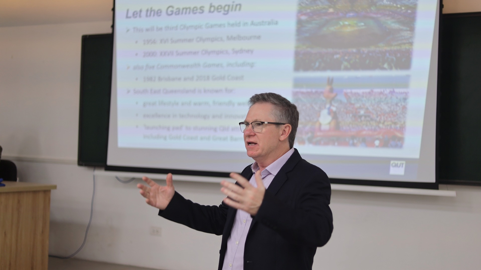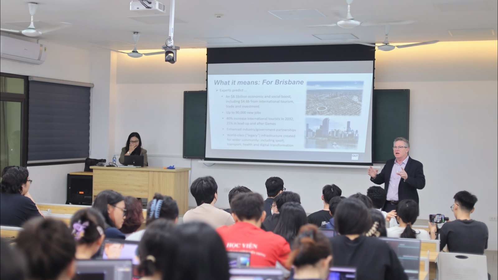 On May 21, 2025, the International Training Center (CIE) at the Posts and Telecommunications Institute of Technology (PTIT) hosted an academic seminar with the participation of Professor Mark Harvey, an international expert in the fields of policy and development communication. The specialized lecture focused on the economic strategy of Brisbane (Australia) in the context of preparing to host the 2032 Olympic Games, offering interdisciplinary perspectives and global directions for PTIT students.